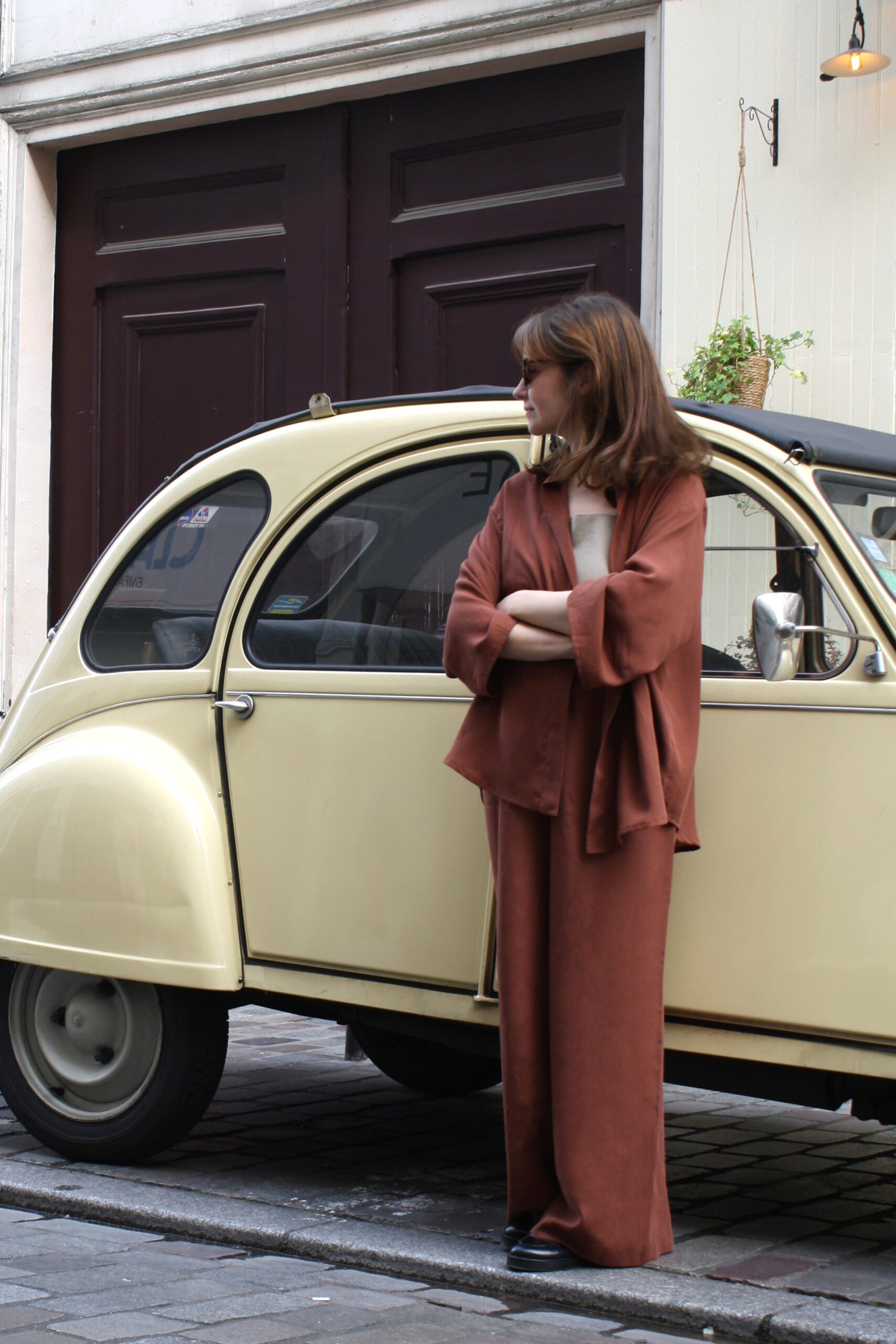 For an effortlessly elegant and still super comfortable look, pair them with our Oversized Tencel Blouse Maroon.