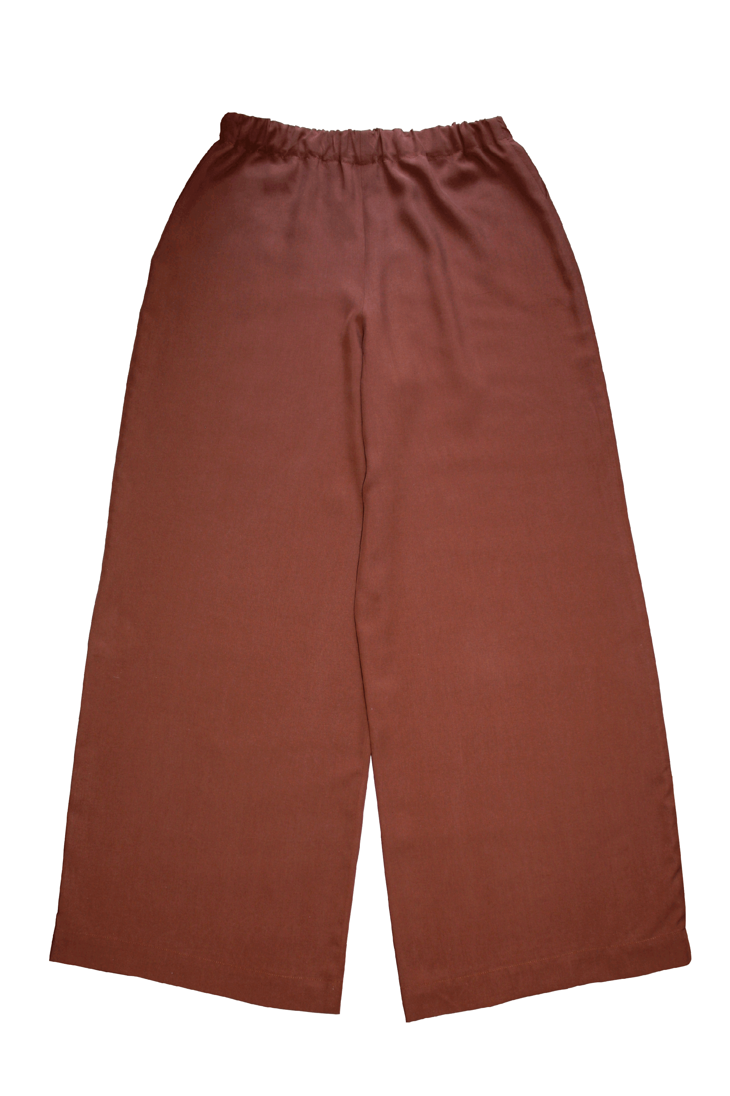 If you are looking for both comfort and style, you no longer need to compromise. The Tencel Pants Maroon combine the feeling of wearing pyjama pants with a chic and polished look. They are not only easy to combine, but also easy to wear. While the elastic waistband and side pockets make them a practical wardrobe staple, the flowing fabric and wide legs give them a sophisticated feel.